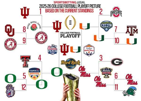 In 2024-25, the NCAA changed to a 12-team CFP format. Now, instead of the four best-ranked conference winners getting the top four seeds, the playoffs will be seeded in the order of the final season rankings. The top-five ranked conference-winning programs will earn an automatic bid to the CFP. Check out our CFP betting page for more information on how this format will operate.