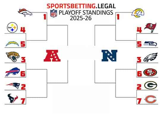 Only the top seed in the AFC and NFC receive a bye week during the opening round of the Playoffs, also referred to as wild card weekend. Check out our analysis of the NFL Playoff picture odds versus the current standings to learn more about what these seedings mean when weighed against the Super Bowl futures.